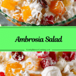 A creamy, nostalgic dessert-salad made with whipped cream, yogurt, coconut, fruit, and marshmallows. Ambrosia salad is a classic favorite for holidays, potlucks, and family gatherings.