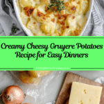 Cheesy Gruyere Potatoes are a comforting and indulgent side dish featuring tender Yukon gold potatoes baked in a creamy, savory Gruyere cheese sauce enriched with butter, shallots, garlic, and fresh thyme. This dish offers a perfect balance of creamy textures and rich flavors, ideal for holiday dinners or cozy family meals.