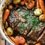 Chuck roast with balsamic and Dijon is a comforting, flavor-packed meal that elevates the traditional pot roast with a tangy and savory twist. The slow braise creates melt-in-your-mouth beef and perfectly tender vegetables, making this dish a showstopper for family dinners or gatherings.
