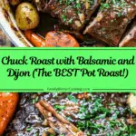 This chuck roast with balsamic and Dijon is a flavorful twist on classic pot roast. Braised slowly with balsamic vinegar, Dijon mustard, and fresh thyme, the beef becomes tender and juicy while carrots and baby potatoes soak up the savory broth for a hearty one-pot meal.