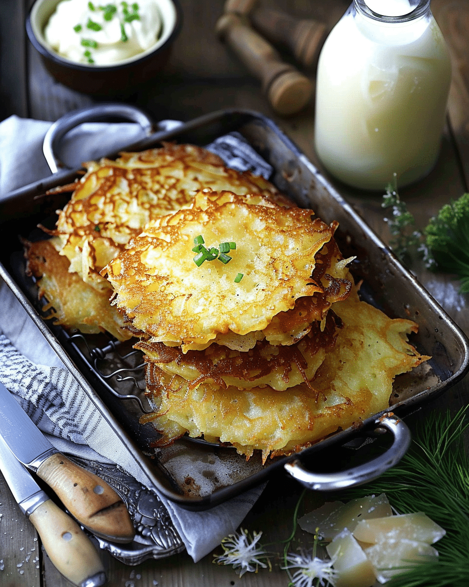 These potato pancakes are quick to prepare, incredibly versatile, and deliver that perfect balance of crispy edges and soft centers. They can be served sweet with applesauce or savory alongside sour cream, smoked salmon, or hearty meat dishes. With just a few pantry staples, you can recreate an authentic German comfort food classic at home.