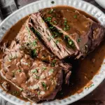 German Sauerbraten is a traditional marinated pot roast, slow-cooked until tender with a tangy-sweet gravy thickened with gingersnaps. This comforting dish is a German classic, perfect for festive gatherings, family dinners, or Oktoberfest celebrations.