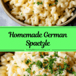Homemade German Spaetzle are soft, chewy egg noodles made from a simple batter of flour, eggs, and milk. Boiled until tender and often tossed with butter and herbs, they’re a versatile side dish that pairs perfectly with schnitzel, goulash, or creamy sauces.