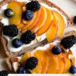 PrintHoney Roasted Peach Toast with Greek Yogurt, Blackberries, and Almonds Recipe