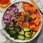 This Tabasco and gochujang-cured salmon poke bowl is a vibrant, spicy, and refreshing twist on a classic dish. With bold flavors, fresh vegetables, and a hearty rice base, it’s a balanced meal that’s quick to prepare yet feels special. Perfect for when you want something light but packed with flavor, this poke bowl will quickly become a favorite in your recipe collection.